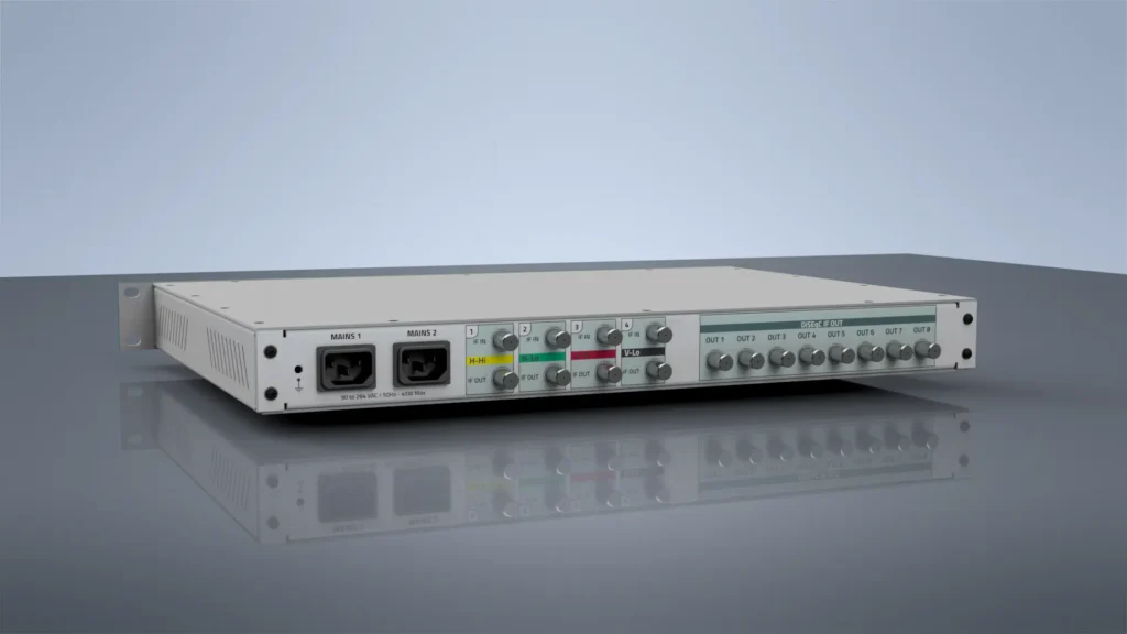 MS48WJ2 integra una matrice RF a stato solido con 4 ingressi IF SAT e 8 uscite indipendenti, ottimizzando la distribuzione del segnale per applicazioni in armadi ripetitori DVB-T/T2, sistemi radio analogici FM e digitali DAB/DAB+. Grazie alla sua meccanica compatta in formato rack 19” (1 UNI) e alla profondità ridotta di soli 295 mm, si adatta perfettamente a installazioni professionali che richiedono efficienza e affidabilità.